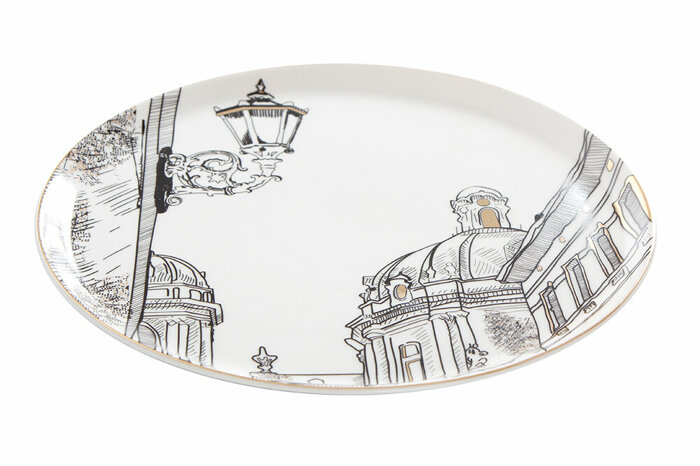 Marie Antoinette Koleksiyonu, Fransız Zarafetini Evinize Taşıyor! 18.yy’ da Fransa’dan doğarak yayılan sanat akımı Rokoko’nun öncüsü sayılan Kraliçe Marie Antoinette’in ilham kaynağı olduğu gözde koleksiyon, Porland tasarımcıları tarafından uzun soluklu bir araştırma ve uygulama sürecinin ardından hazırlandı. Barok dönemden sonra yeniden klasik stile dönüş yapıldığı için Rokoko -yani modası geçmiş- adını alan bu akım, her ne kadar modası geçmiş anlamında kullanılsa da özgür yaşam tarzını, sarayın ihtişam ve neşeli havası ile birleştirerek mobilyadan, mimariye, kumaştan, kostüme kadar hayatımızın pek çok alanına yeni stiller kazandırdı. Rokoko tarzın bir yansıması olan Marie Antoinette Koleksiyonu, süs ve güzelliğin ön plana çıktığı, zenginliği ve görkemi yansıtırken; desenlerinde sakladığı kıvrım, çizgi ve şekilleri ile ince ve gizemli bir sunum amaçlıyor. Post Modern temasından etkilenilerek tasarlanan koleksiyon, modern ile klasiğin kontrasını aynı anda yakalayarak, tarihin mistik havasını evinize taşıyor. Modern formlara klasik desenlerin siyah renk ve altın yaldız ile işlendiği Marie Antoinette koleksiyonunda; farklı ölçülerde düz tabaklar, çok amaçlı kâseler, çay ve kahve fincanlarının yanı sıra dekoratif amaçlı kullanılabilecek vazo, yastık gibi özel parçalar da yer alıyor. Koleksiyon aynı zamanda kişisel kullanıma yönelik çanta, cüzdan gibi ürünlerle de zenginleştirildi. Her parçası tabloyu andıran ve ayrı bir tasvire sahip olan koleksiyon, sadece eşsiz bir sunum fırsatı değil, nesilden nesile aktarılacak kıymetli bir miras fırsatı da sunuyor. Kullanım Talimatı: Elde yıkama tavsiye edilir. Fırında kullanılabilir, mikrodalga fırın kullanımına uygun değildir.