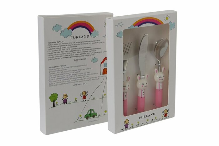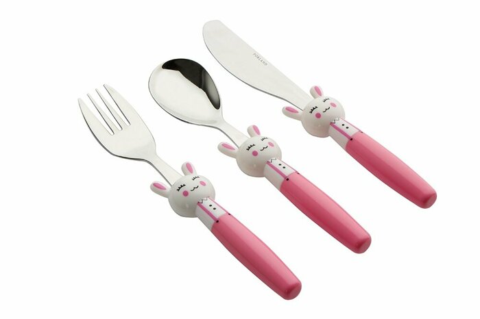 Mini Rabbit Pembe Çocuk Çatal Kaşık Bıçak Takımı 3 Parça